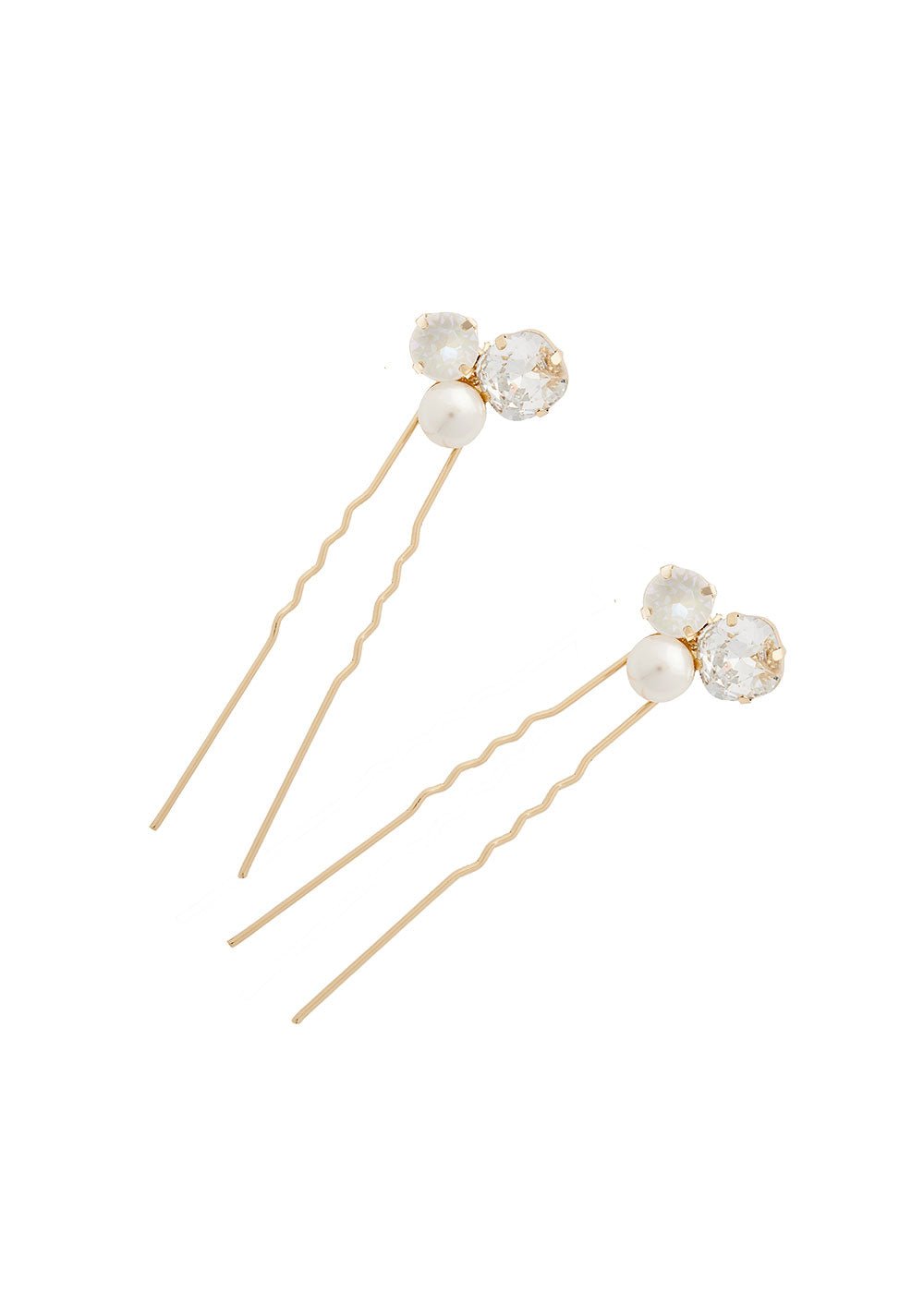 Refresh availabilityA set off two clustered pearl and crystal hairpins.