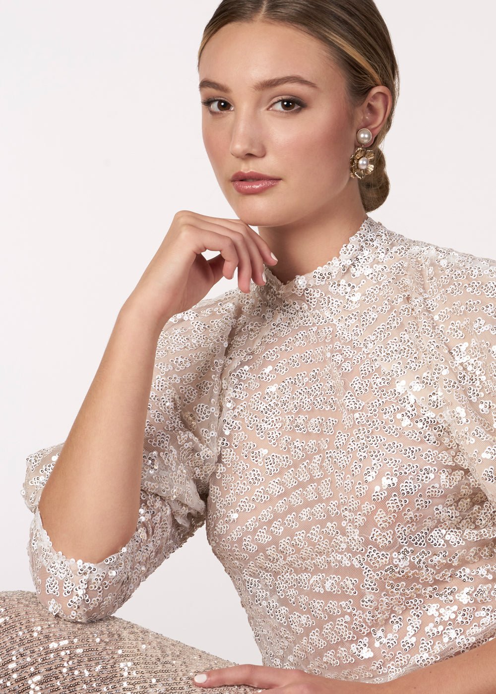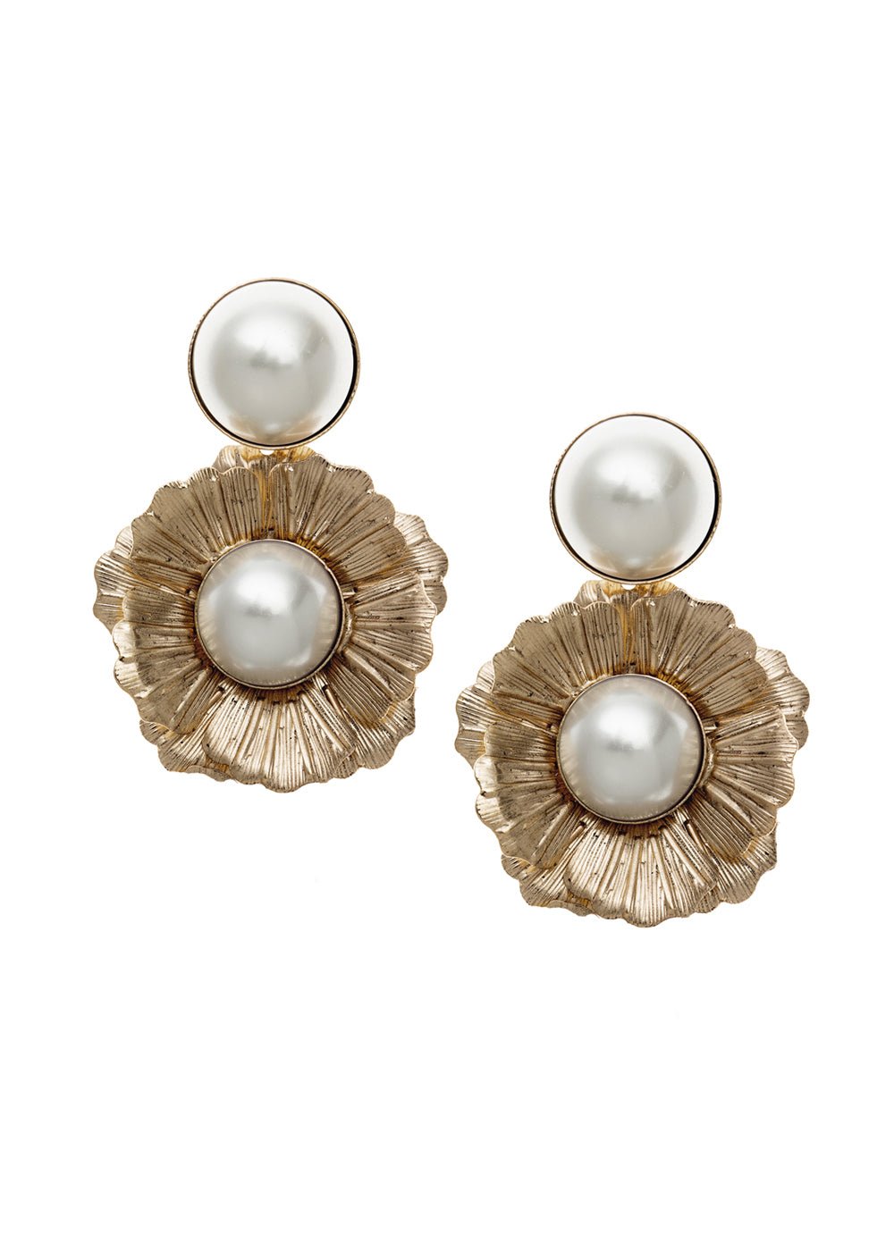 Refresh availabilityFlower power with a touch of pearly luster! A lovely lightweight floral drop earring topped off with an oversized pearl stud.