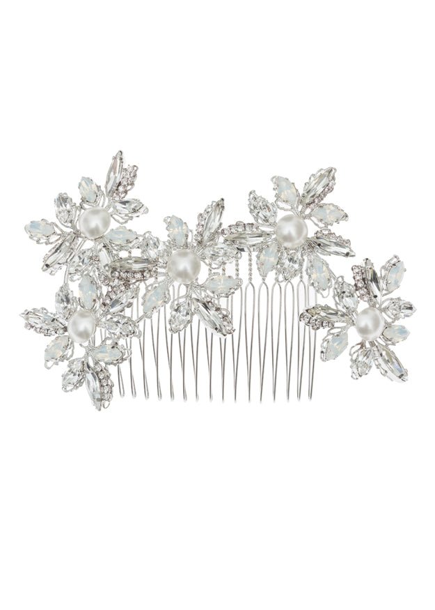Statement floral hair comb made from Swarovski crystal and pearls