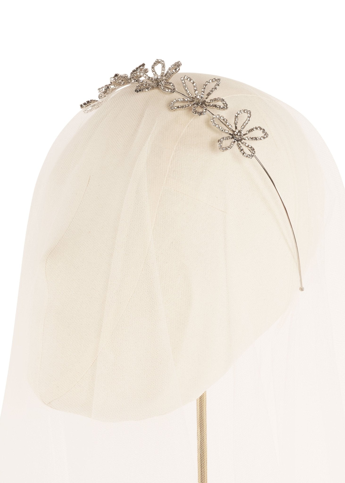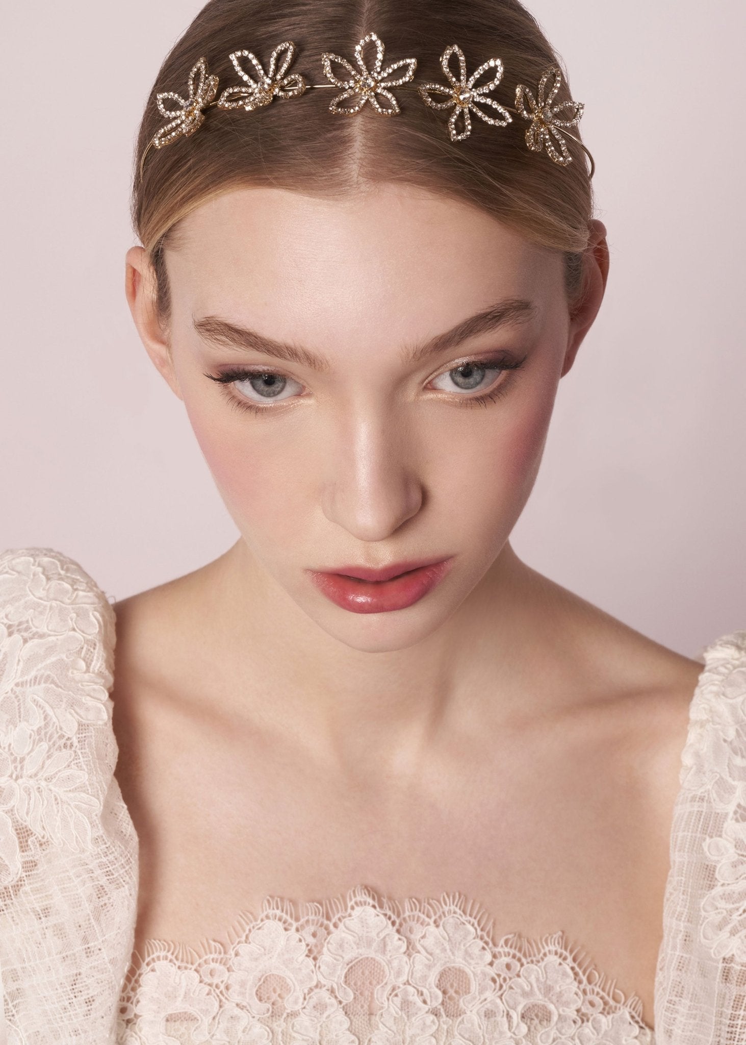 We love volume and sparkle in our designs and our latest 'Pavet Scatter Band' is no exception. A bridal hairpiece made from an assembly of twinkling crystal encrusted flowers. A dimensional floral hairband that is light and lovely enough to be worn for hours. Wear it across the front or back of your hair to add a touch if sparkle to your wedding style.