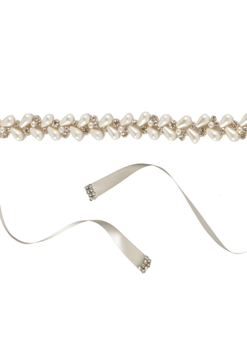 Refresh availabilityWe've updated one of our best selling sashes to create our new 'Pearletta sash'. A perfect narrow accent belt made from an assembly of pearls and crystals. It has just a touch of sparkle to finish your look.