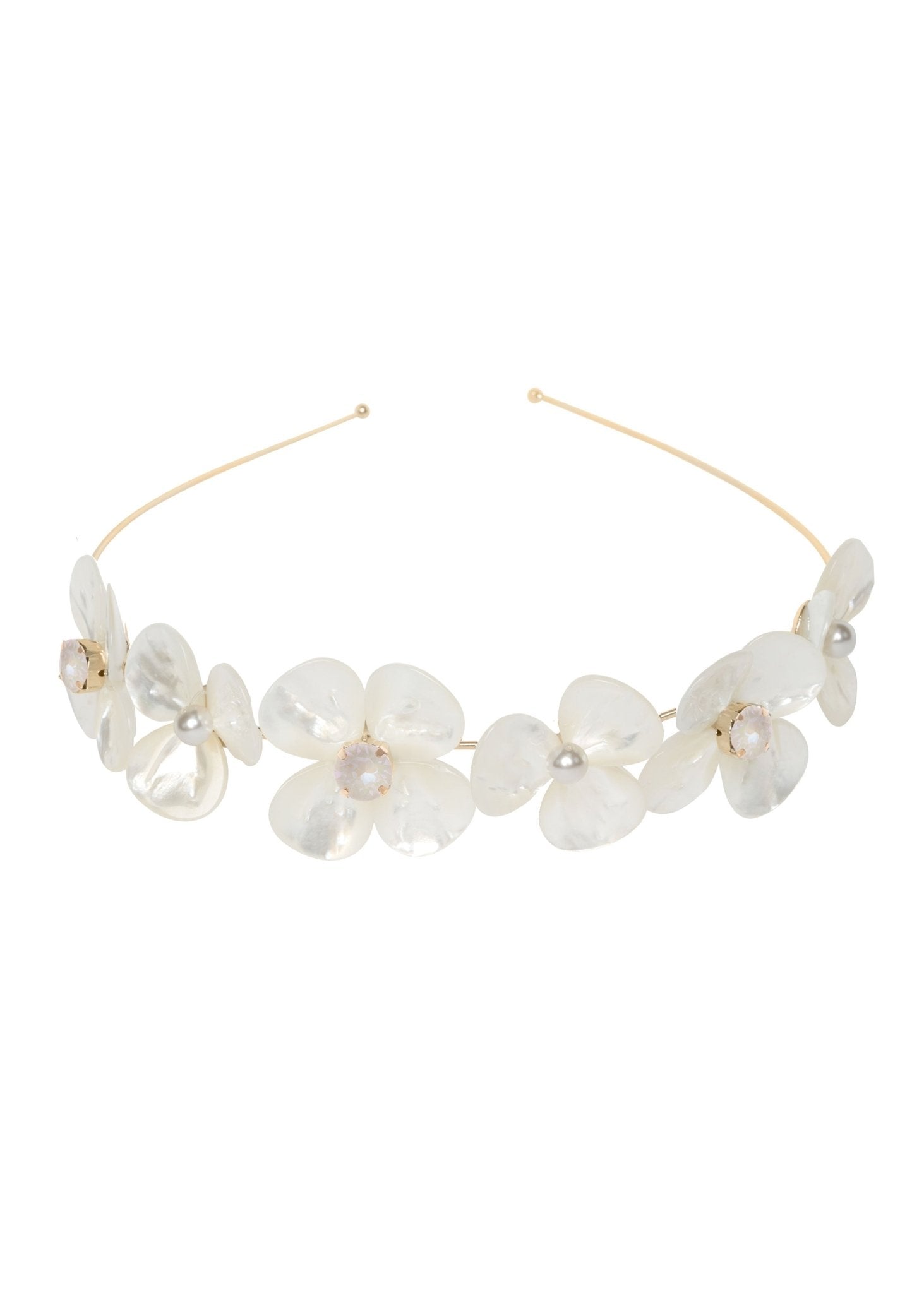 We love volume and dimension at Elizabeth Bower and our 'Petal Headband' is no exception. Made from and assembly of hand sewn mother of pearl beads accented with European crystals and pearls. Dress up your locks in one today.