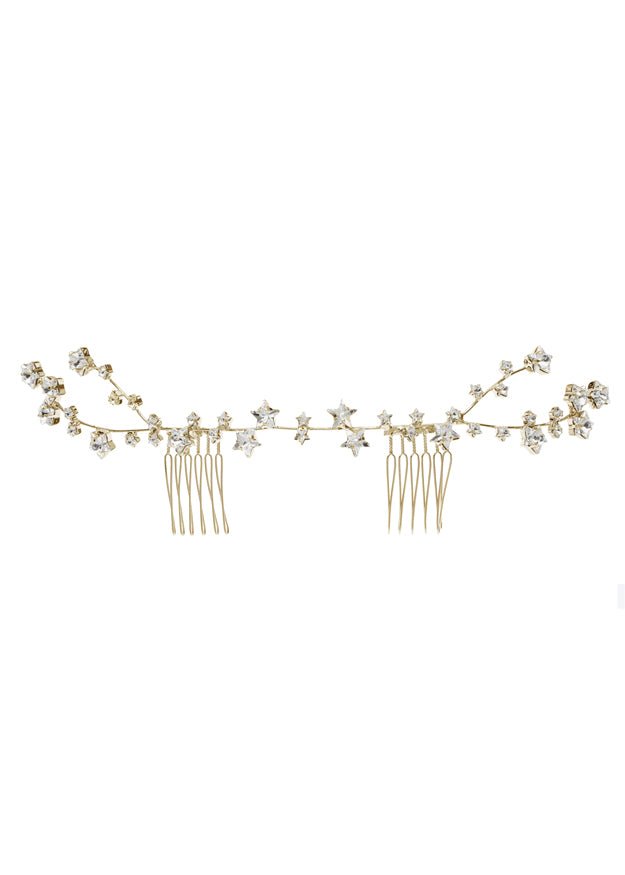Refresh availabilityReach for the stars in our celestially accented bridal hair comb. Created with claw set European crystals. Wear it across the back of your hair for a modern starry accent on your wedding day.